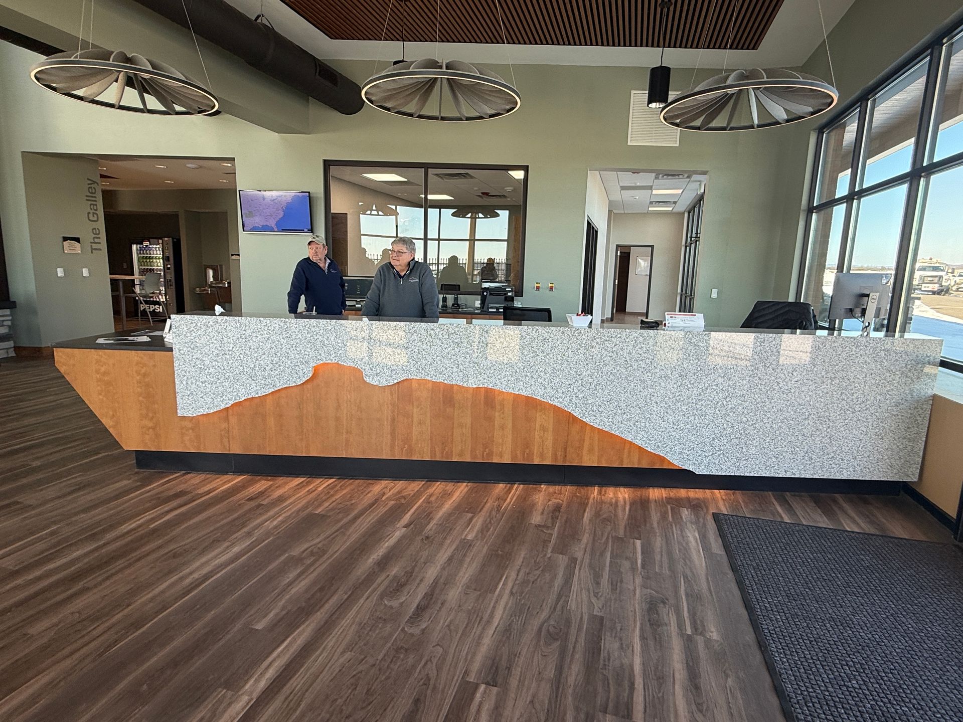 One project we were especially proud to be part of was at the Mount Airy Surry County Airport. The space features locally sourced "Mount Airy" granite countertops along with a custom fireplace that reflects the character of the area.